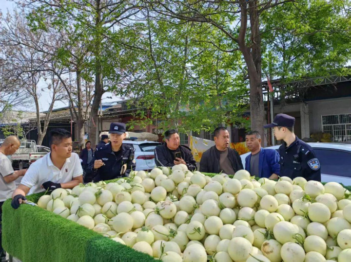 又是一年阎良关山甜瓜成熟季,熟悉的是甜蜜的味道,不变的是公安阎良分局关山派出所的暖心守护。近期,西安市阎良区甜瓜大量上市,关山派出所认真落实派出所主防“1551”模式,“531”预防警务机制,时刻坚守在甜瓜生产销售一线,持续发挥“甜瓜警务”“马扎工作法”机制作用,开启田间地头警务模式,及时化解各类矛盾纠纷,护航甜瓜销售,助力乡村振兴。